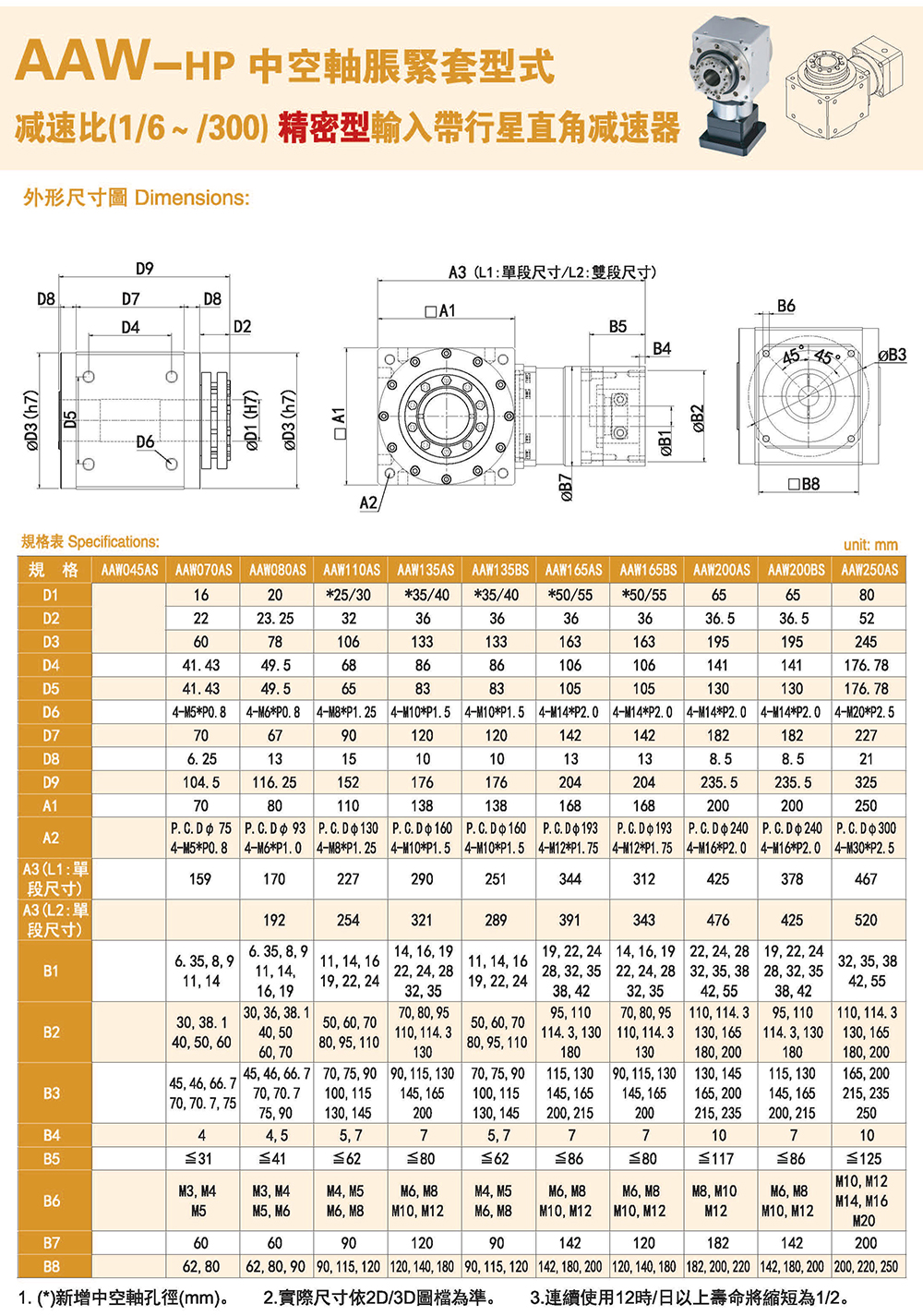 多樣化:輸出軸種類多樣化,有單出力軸型、雙出力軸型、中空軸型、中空法蘭型、中空軸錐形緊迫性、螺桿直線型、螺牙直線型。