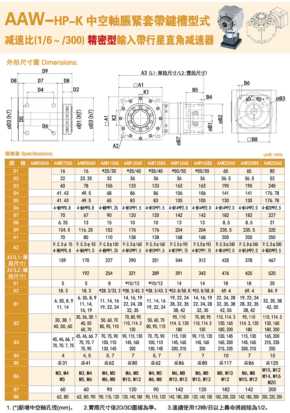 AAW-HP-K中空軸脹緊套型式 精密輸入帶行星直角減速器