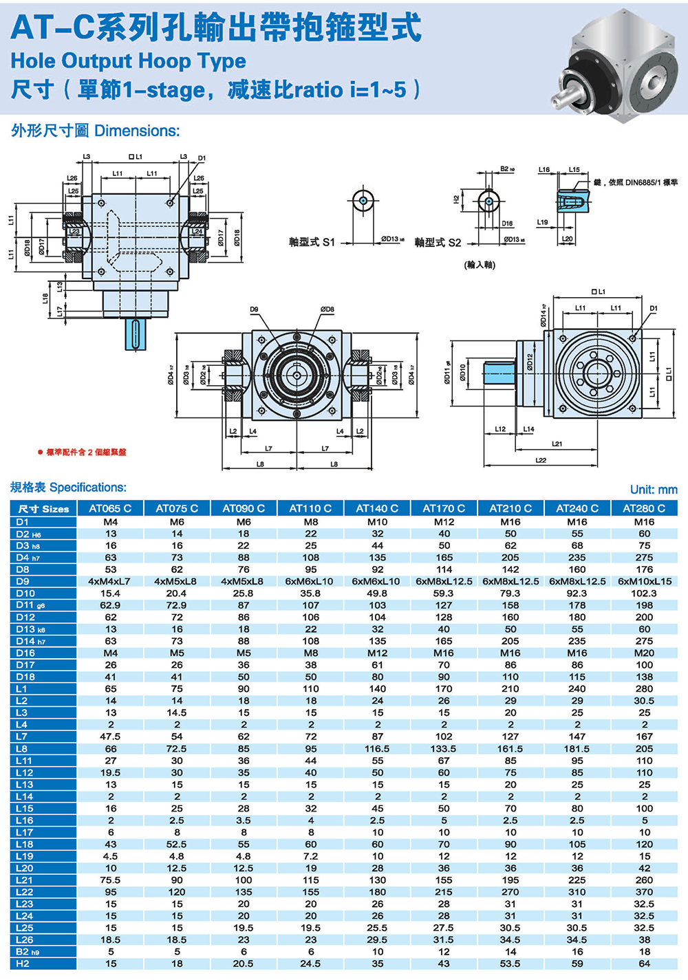 多樣化:輸出軸種類多樣化,有單出力軸型、雙出力軸型、中空軸型、中空法蘭型、中空軸錐形緊迫性、螺桿直線型、螺牙直線型。