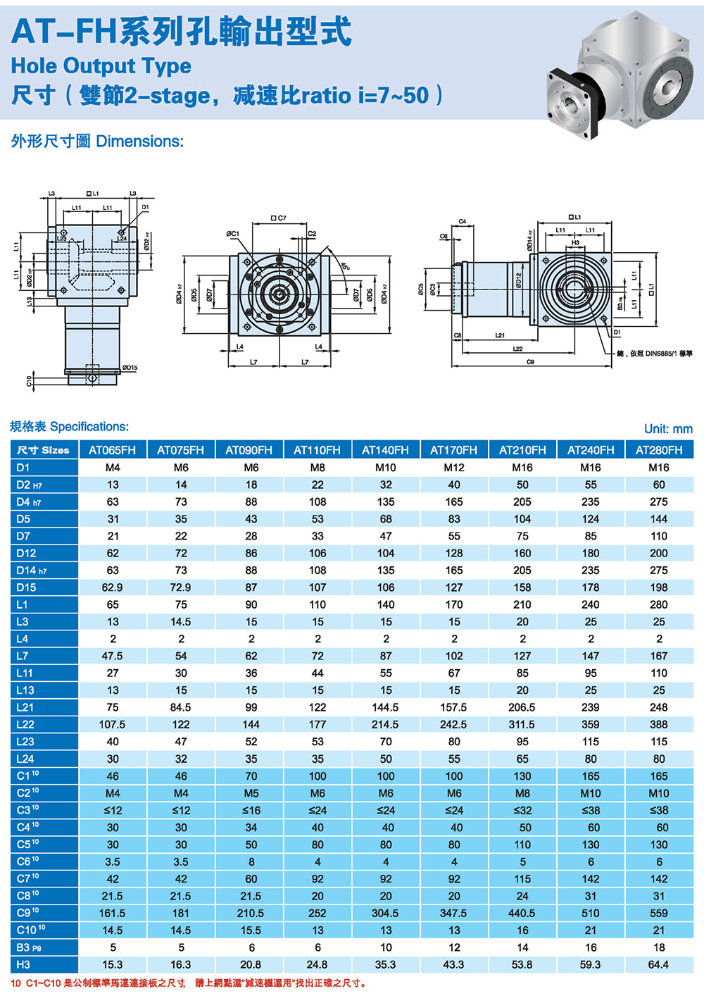 多樣化:輸出軸種類多樣化,有單出力軸型、雙出力軸型、中空軸型、中空法蘭型、中空軸錐形緊迫性、螺桿直線型、螺牙直線型。