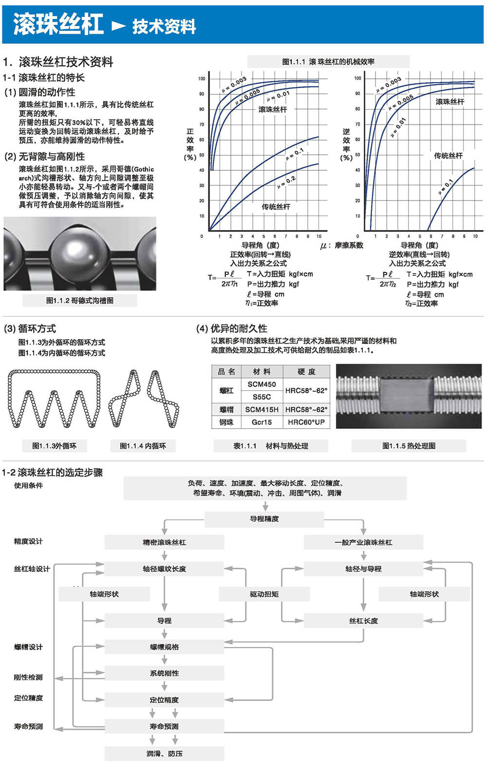 請珠絲杠如圈1.1.2所示,采用哥德(Gothioarch)式溝樓形狀、軸方向上間雕調整至極小亦能輕易轉動。又與一個成者兩個螺帽間做預壓調整,予以消脈軸方向問限,使其具有可符合使用條件的適當剛性。