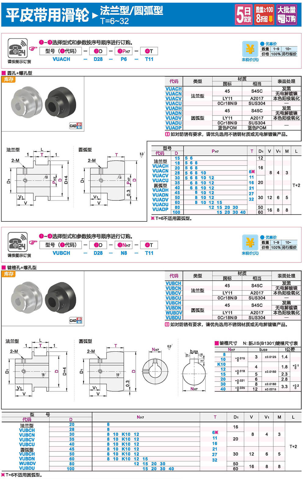 滑輪惰輪在機械設備中與平皮帶圓皮帶配合使用,起到動力傳遞、輸出、過渡、皮帶張緊用等,用于皮帶張緊時也可稱作張緊輪