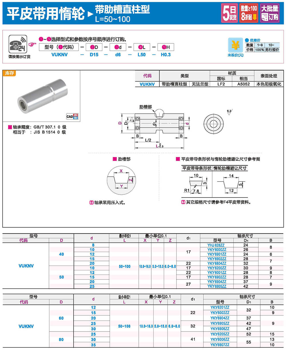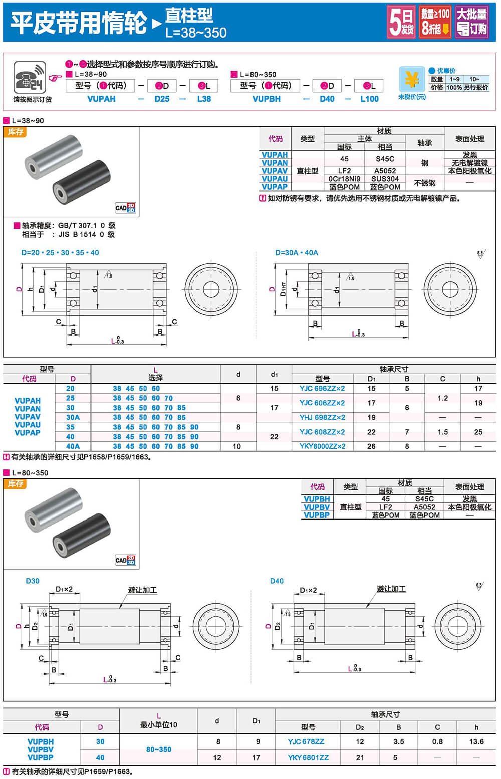 滑輪惰輪在機(jī)械設(shè)備中與平皮帶圓皮帶配合使用,起到動(dòng)力傳遞、輸出、過(guò)渡、皮帶張緊用等,用于皮帶張緊時(shí)也可稱作張緊輪