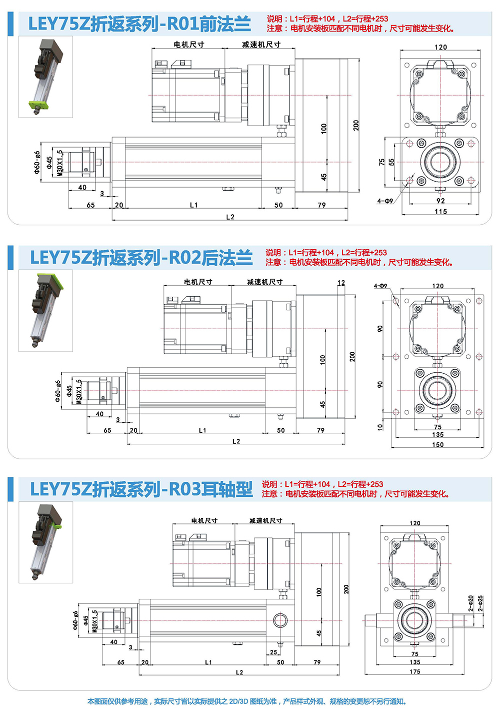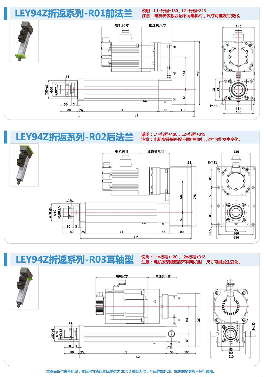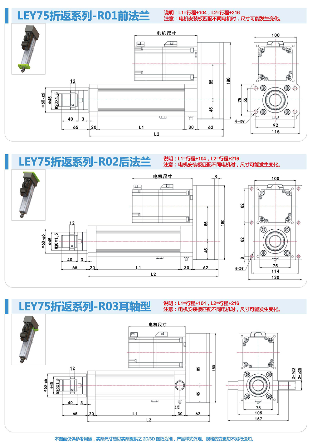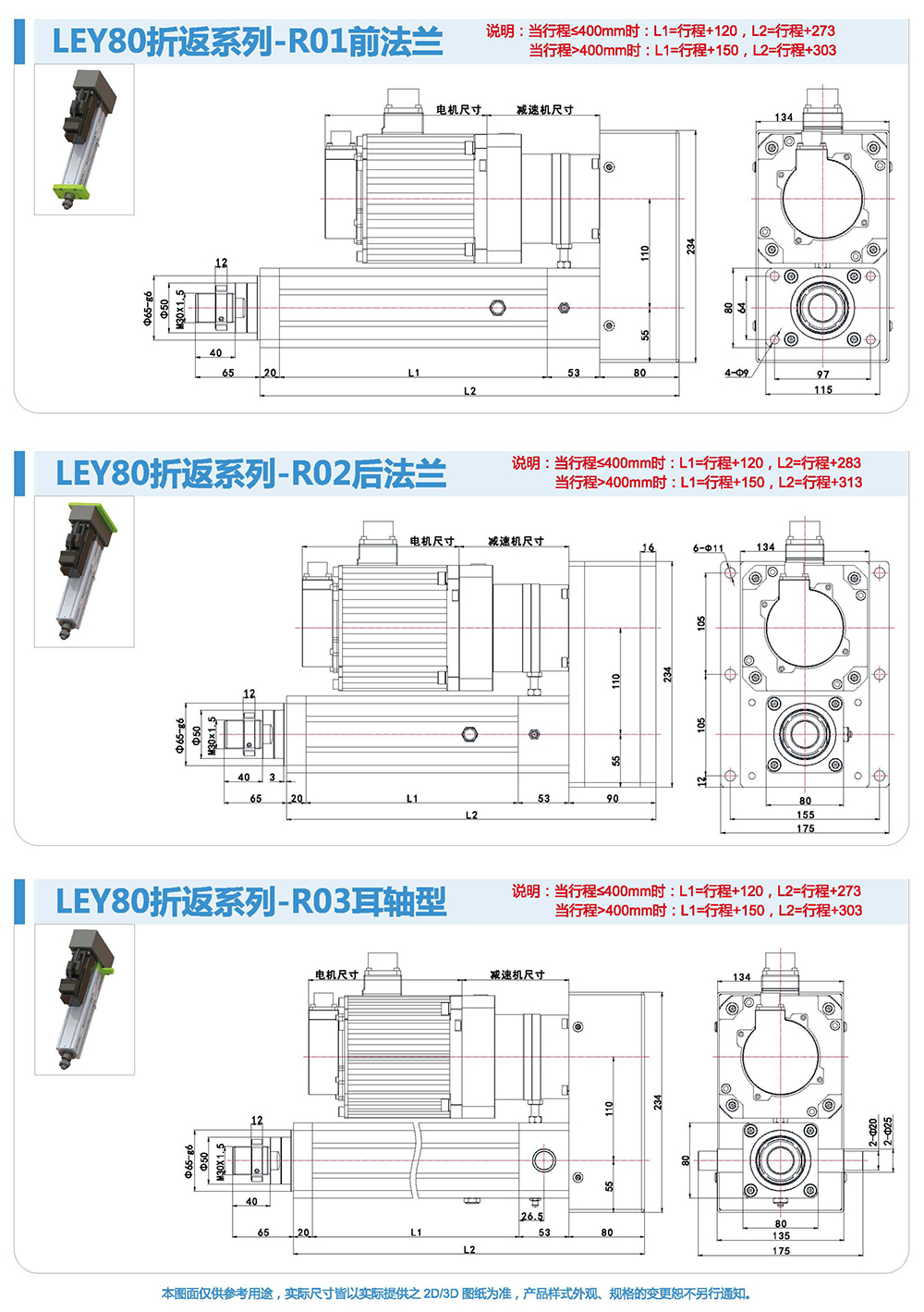 折返式電動(dòng)缸由于整體長度短,適用于安裝位置比較小的場合。同時(shí)本方案選用的同步帶,具有強(qiáng)度高、間隙小壽命長的特點(diǎn),使整個(gè)電動(dòng)缸具有較高的控制性和控制精度。伺服電機(jī)與電動(dòng)缸配合靈活,安裝容易,設(shè)定簡單,使用方便。