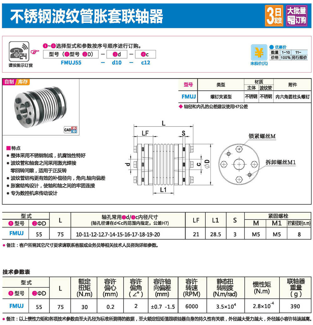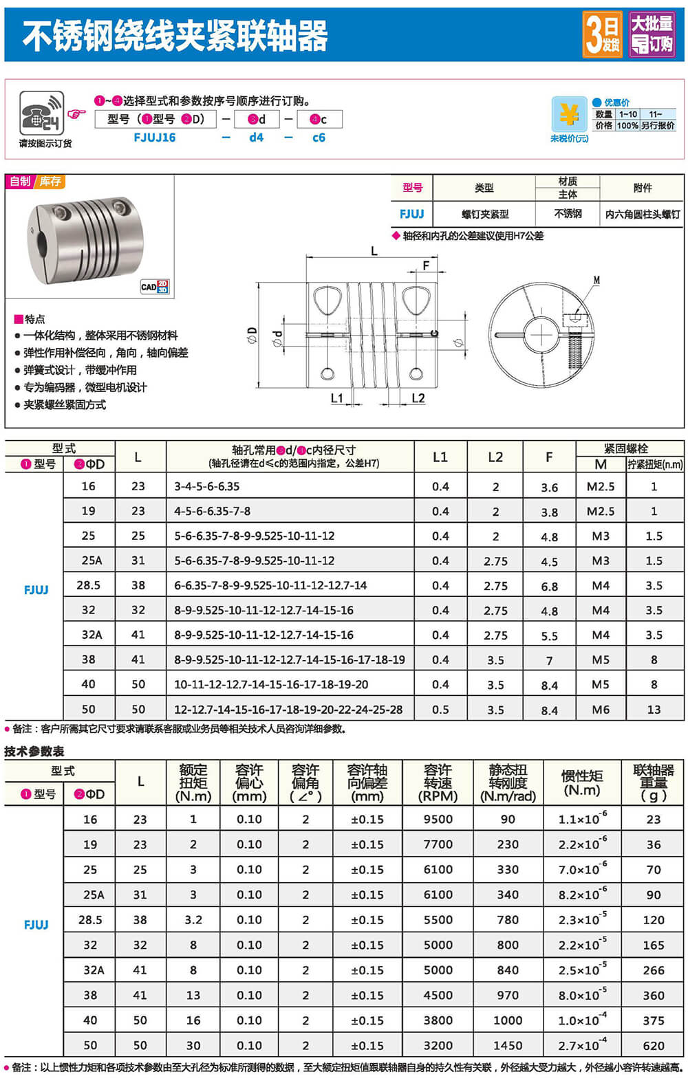 聯(lián)軸器是連接2個不同的旋轉(zhuǎn)體(電機(jī)軸,滾珠絲杠等),并以傳遞扭矩為目的的零件。通過吸收旋轉(zhuǎn)體間發(fā)生的軸心偏差(偏心.偏角.軸向振幅)減輕組裝調(diào)整的難度。并在發(fā)生意外過負(fù)載時,聯(lián)軸器首先損壞、解除旋轉(zhuǎn)體之間的連接,以保護(hù)昂貴的動力部及裝置整體。