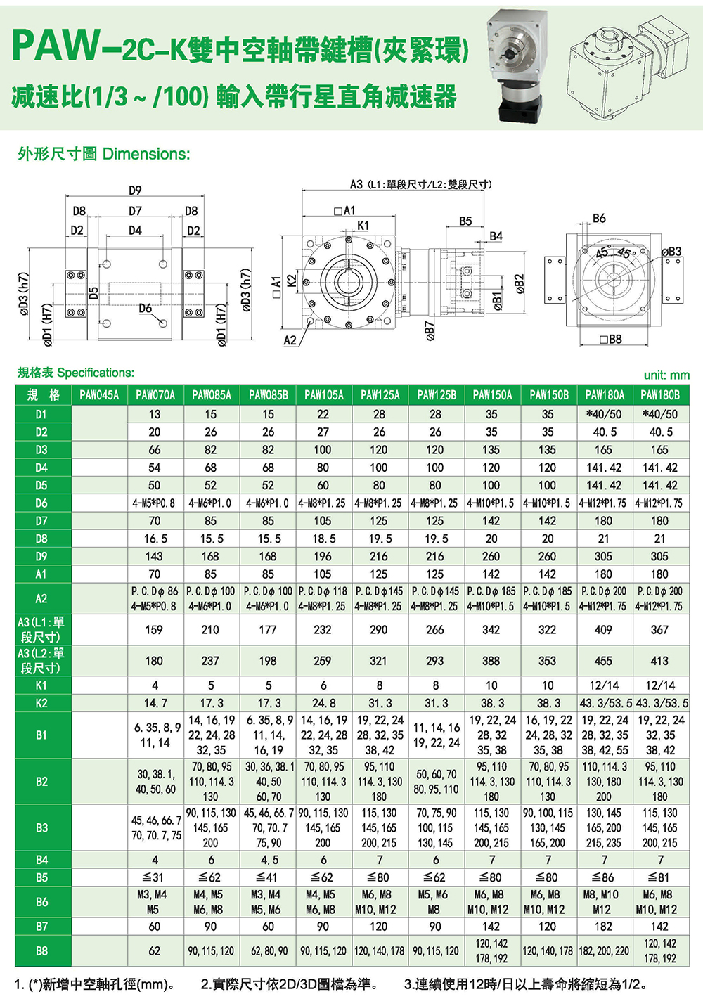 PAW-2C-K雙中空軸帶鍵槽(夾緊環(huán)) 輸入帶行星直角減速器
