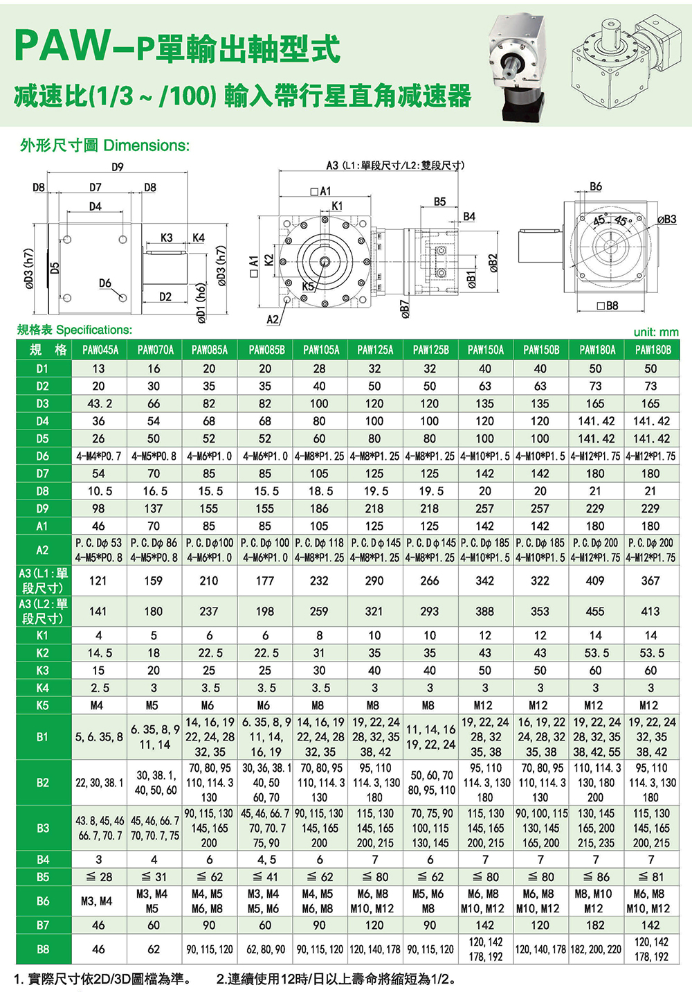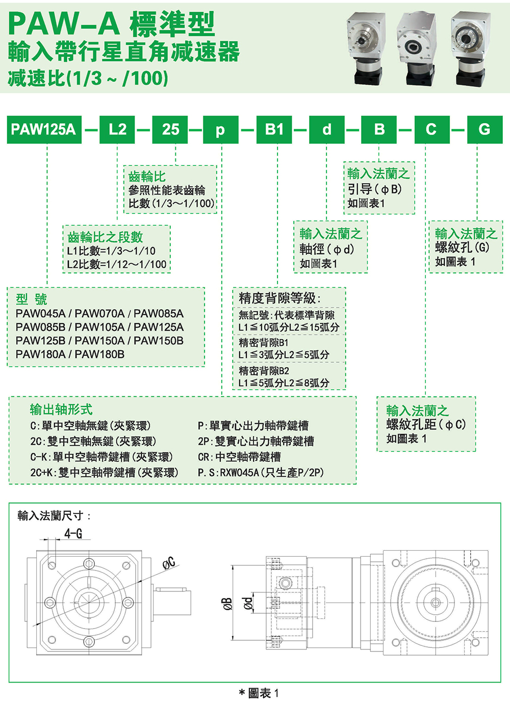 PAW-P單輸出軸型式 輸入帶行星直角減速器