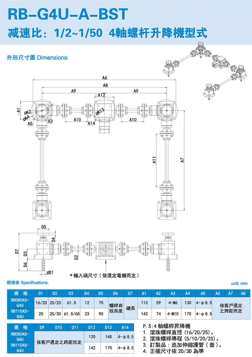 多樣化:輸出軸種類多樣化,有單出力軸型、雙出力軸型、中空軸型、中空法蘭型、中空軸錐形緊迫性、螺桿直線型、螺牙直線型。