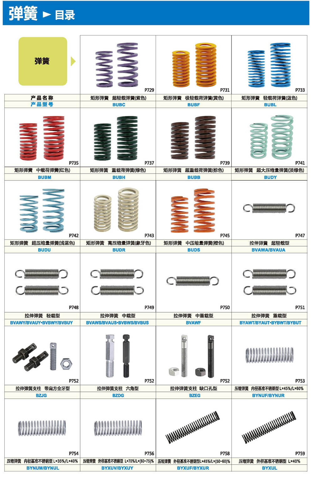 1.圓形截面壓縮彈簧:是承受軸向壓力的螺旋彈簧,它所用的材料截面為圓形。一般為等節(jié)距的,壓縮彈簧的圈與圈之間有一定間隙,當(dāng)受到外載荷時(shí)彈簧會(huì)收縮變形。其剛度穩(wěn)定,結(jié)構(gòu)簡(jiǎn)單,制造方便,應(yīng)用較廣。
