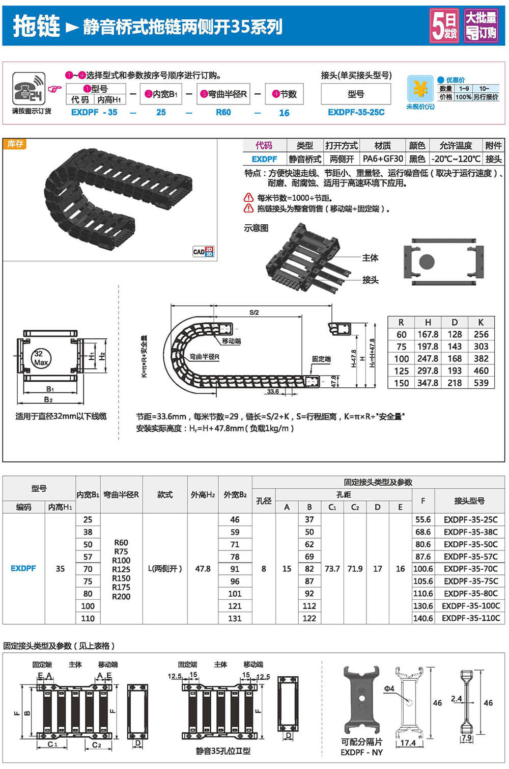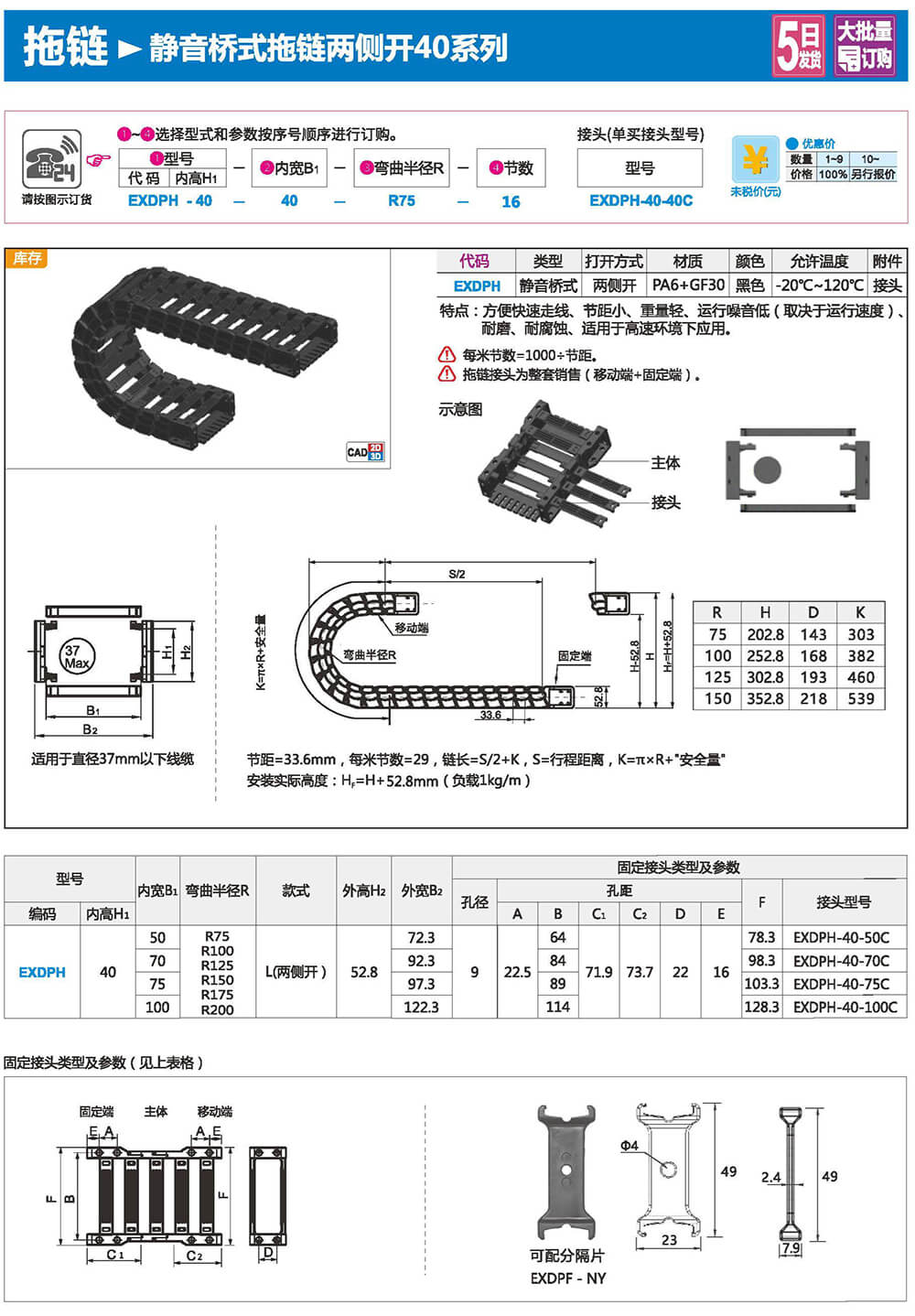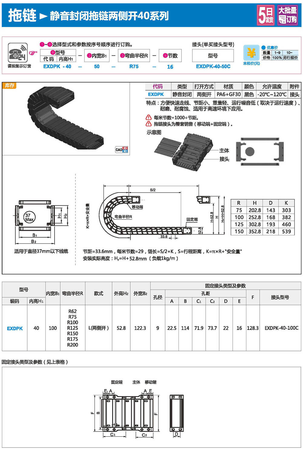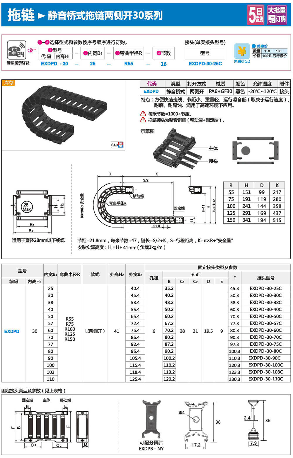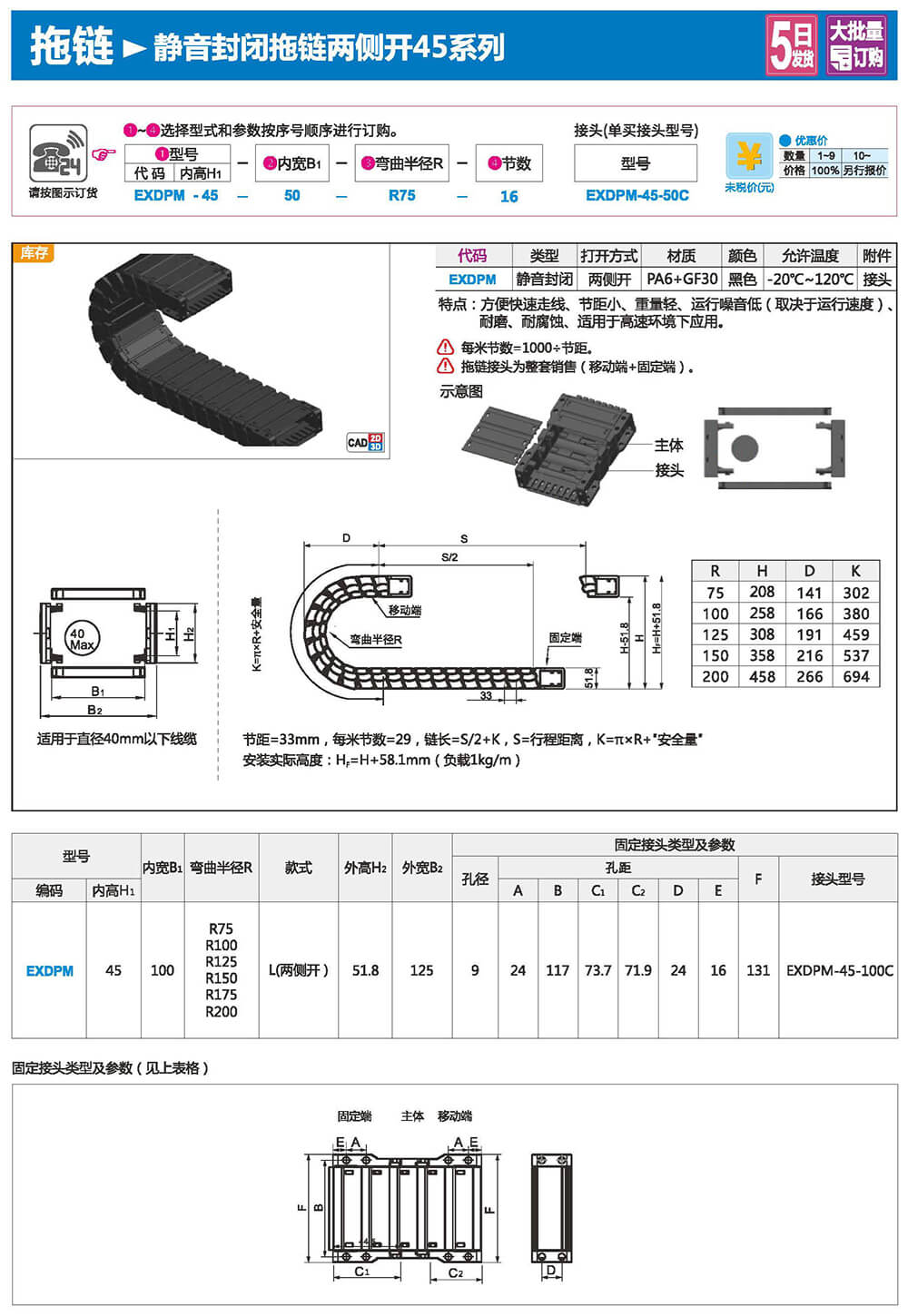 適合于使用在往復(fù)運(yùn)動(dòng)的場(chǎng)合,能夠?qū)?nèi)置的電纜、油管、氣管、水管等起到牽引和保護(hù)作用,拖鏈每節(jié)都能打開(kāi),便于安裝和維修。運(yùn)動(dòng)時(shí)噪音低、耐磨、可高速運(yùn)動(dòng)。拖鏈已被廣泛應(yīng)用于數(shù)控機(jī)床.電子設(shè)備、石材機(jī)械、玻璃機(jī)械、門(mén)窗機(jī)械、注塑機(jī)、機(jī)械手、起重運(yùn)輸設(shè)備、自動(dòng)化倉(cāng)庫(kù)等。