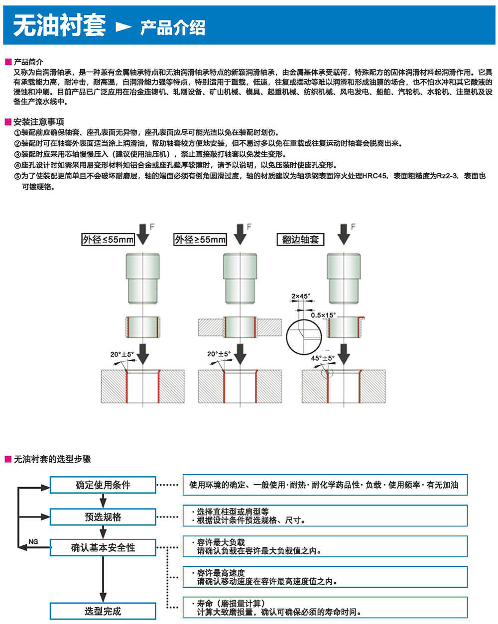 又稱為自潤(rùn)滑軸承,是-一種兼有金屬軸承特點(diǎn)和無油潤(rùn)滑軸承特點(diǎn)的新穎潤(rùn)滑軸承,由金屬基體承受載荷,特殊配方的固體潤(rùn)滑材料起潤(rùn)滑作用。它具有承載能力高,耐沖擊,耐高溫,自潤(rùn)滑能力強(qiáng)等特點(diǎn),特別適用于重載,低速,往復(fù)或擺動(dòng)等難以潤(rùn)滑和形成油膜的場(chǎng)合,也不怕水沖和其它酸液的浸蝕和沖刷。目前產(chǎn)品已廣泛應(yīng)用在冶金連鑄機(jī)、軋剛設(shè)備、礦山機(jī)械、模具,起重機(jī)械.紡織機(jī)械、風(fēng)電發(fā)電、船舶、汽輪機(jī)、水輪機(jī)、注塑機(jī)及設(shè)備生產(chǎn)流水線中。