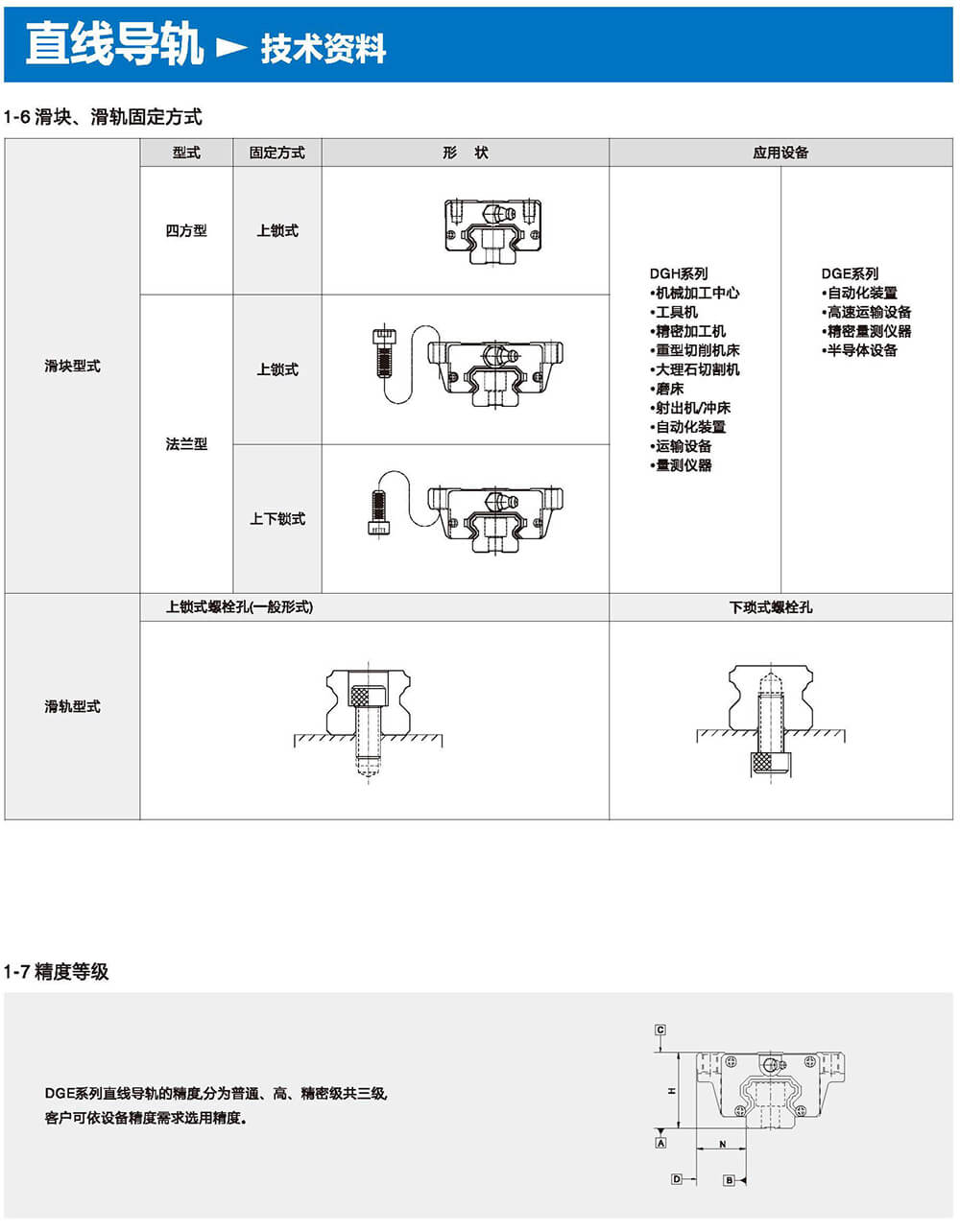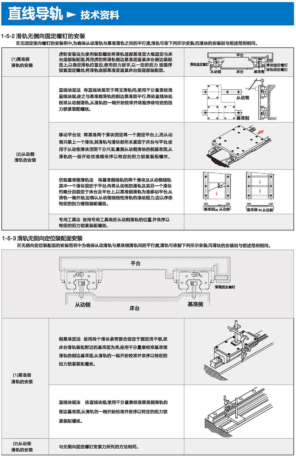 直線導(dǎo)軌由鋼珠在滑塊與滑軌之間作無限滾動循環(huán)負載平臺能沿著滑軌輕易地以高精度做線性運動。與傳統(tǒng)的滑動導(dǎo)引相比較滾動引導(dǎo)的摩擦系數(shù)可降低至1/50,由于啟動的摩擦力大大減少,相對的較少無效運動發(fā)生故而能輕易達到μum級進給及定位。在加上滑塊與滑軌的束制單元設(shè)計,使得線性導(dǎo)軌可同時承受上下左右等各個方向的負荷上述陳列特點并非傳統(tǒng)滑動導(dǎo)引所能比擬因此機臺若能配合滾珠螺桿,使用線性導(dǎo)軌作導(dǎo)引必能大幅提高設(shè)備精度與機械效能。